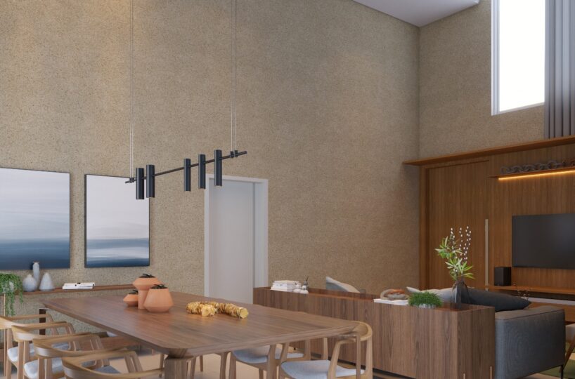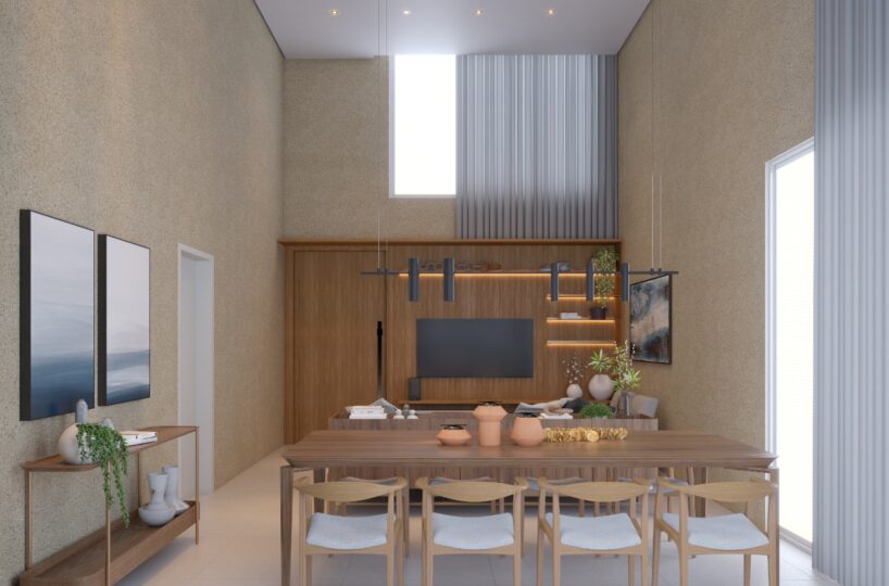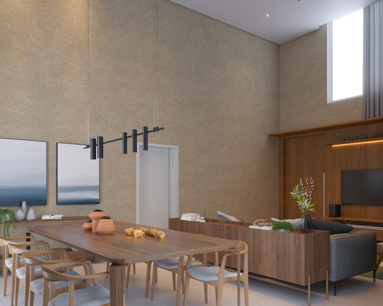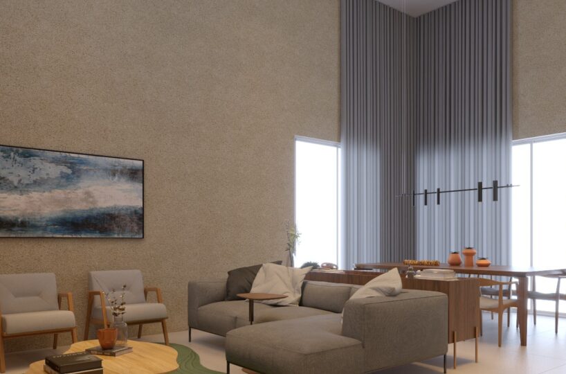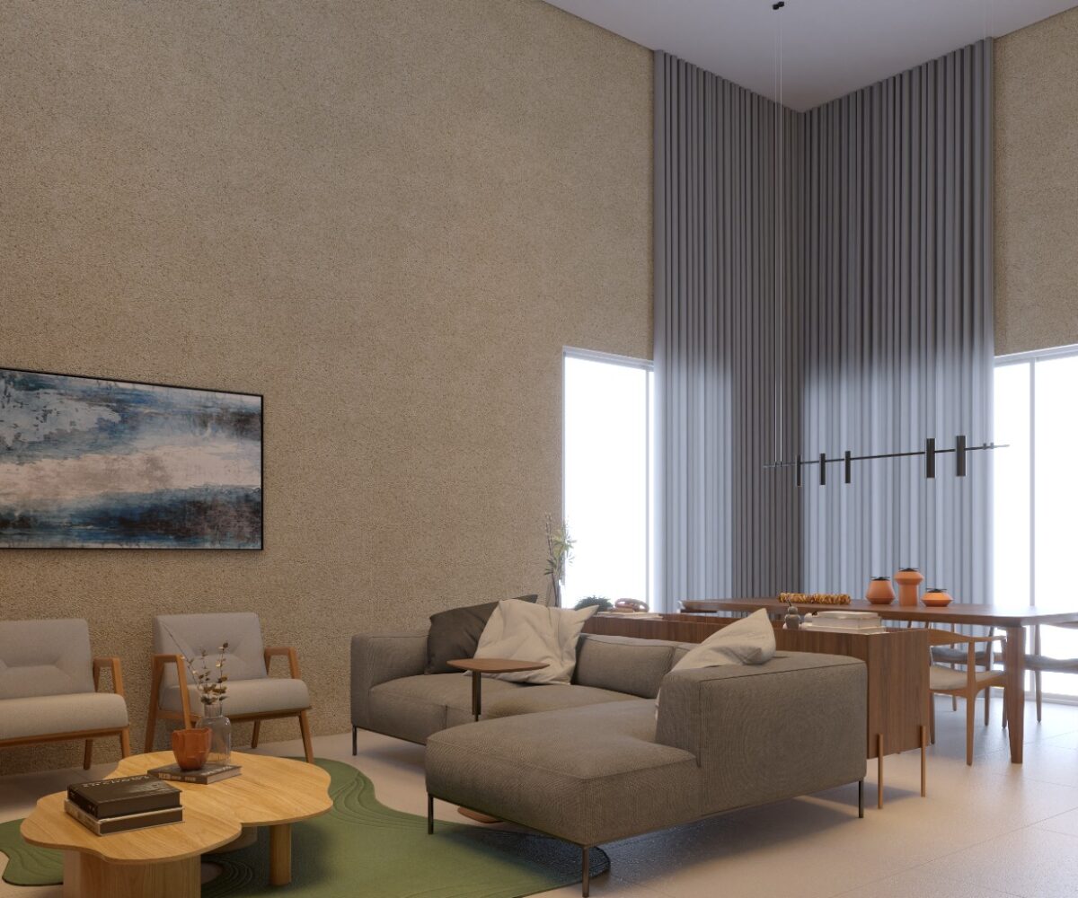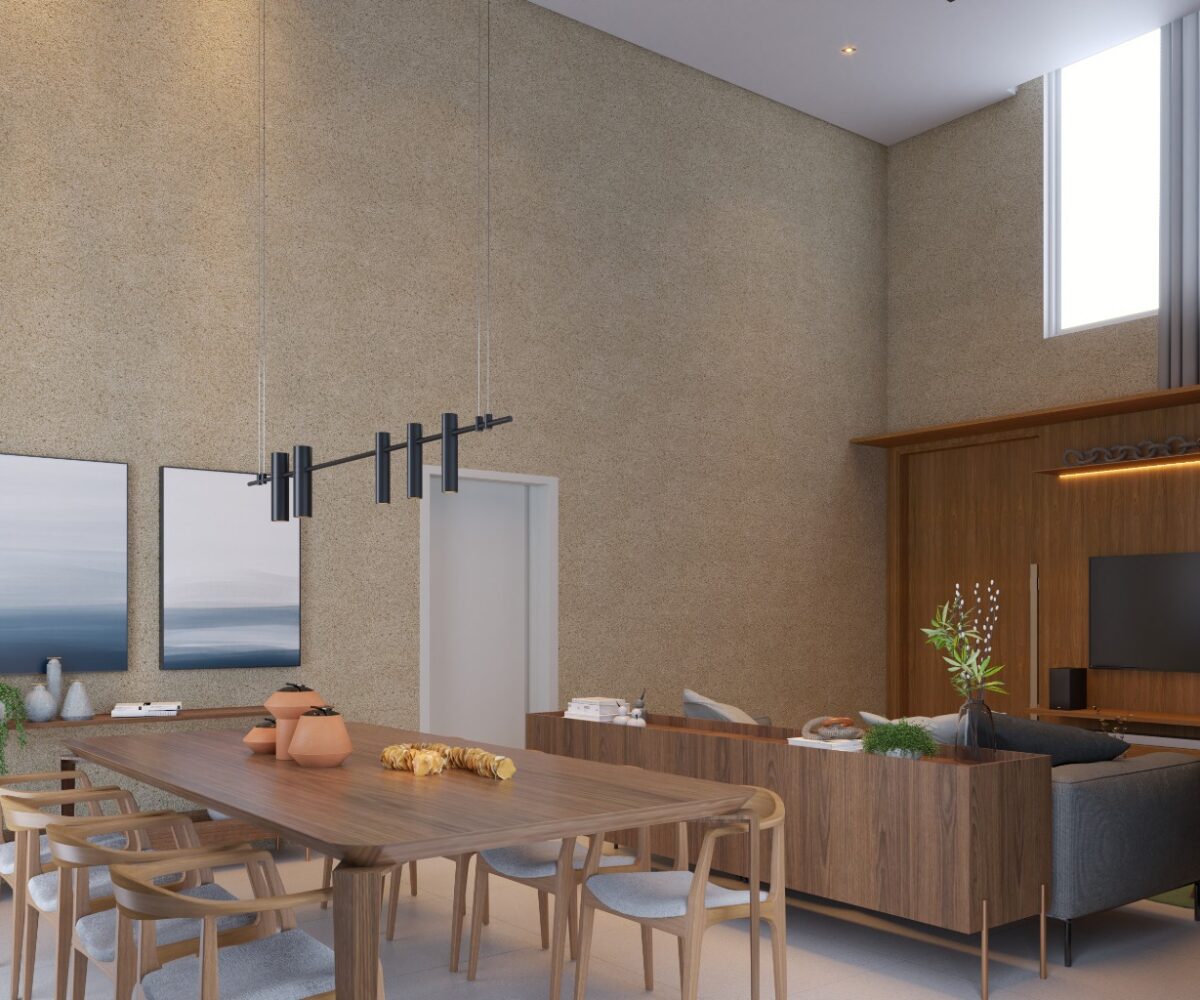 – Sala de estar e jantar com pé direito duplo