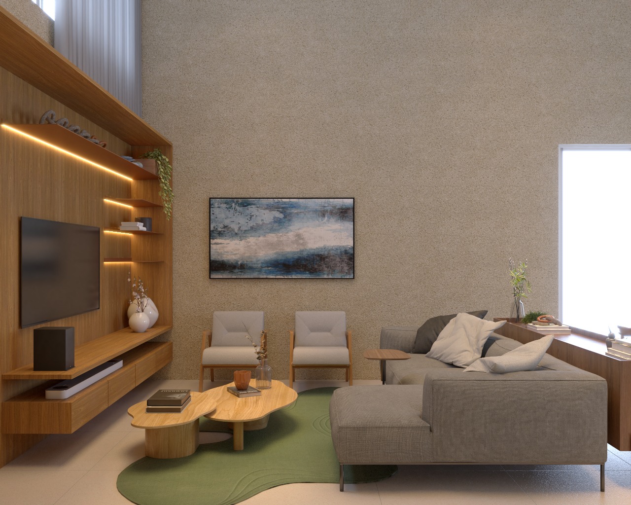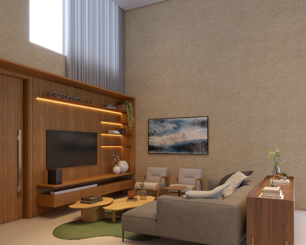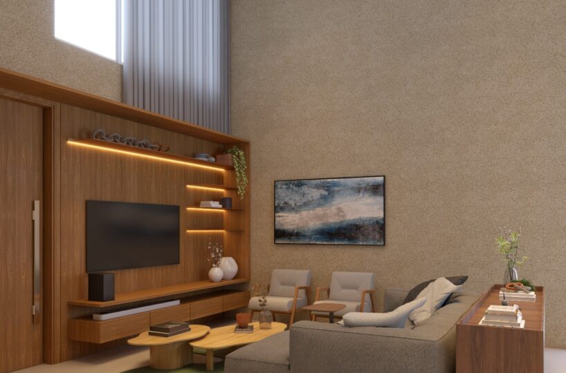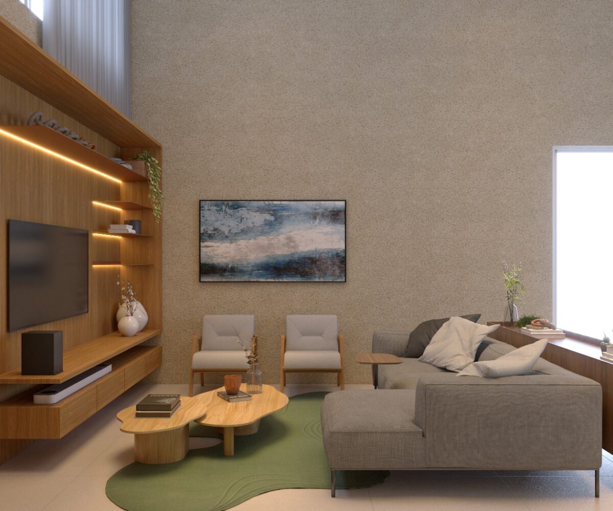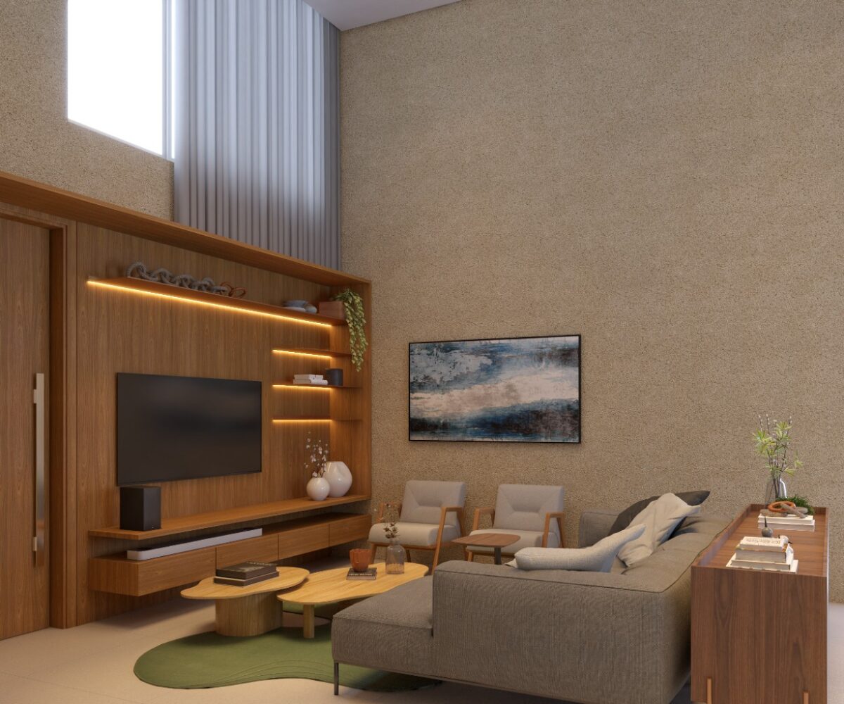 – Sala de estar e jantar com pé direito duplo