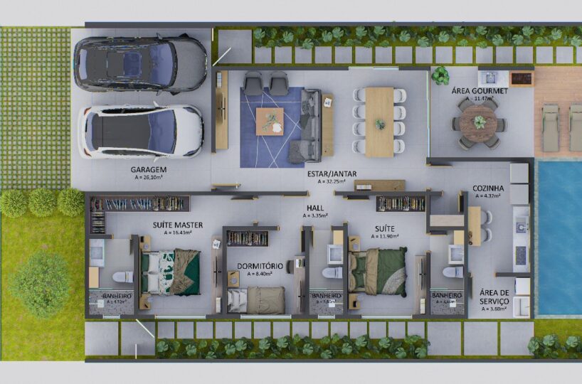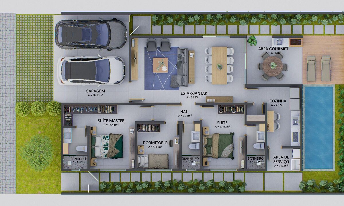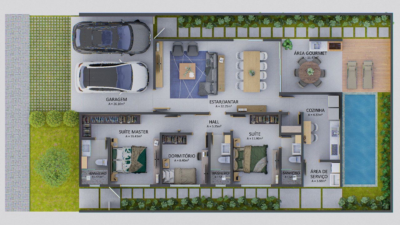 Área total: 264 m² | 12×22