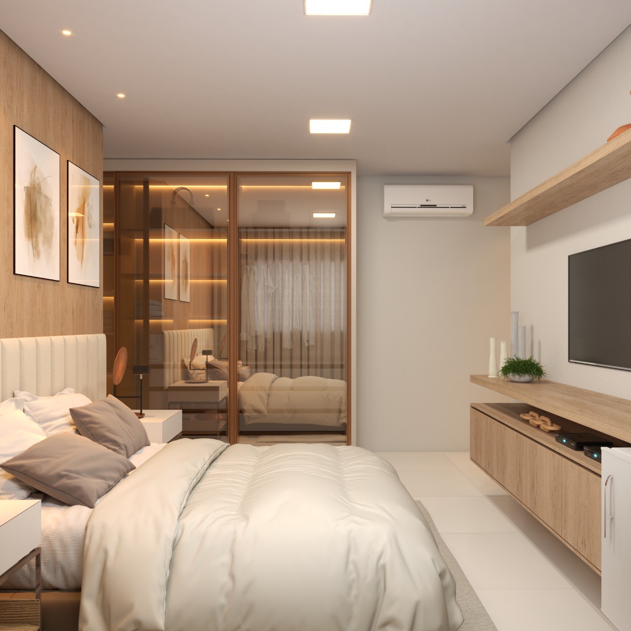 – 03 suítes, sendo 01 reversível