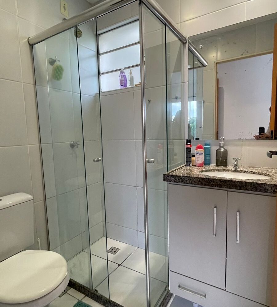 – Banheiros com armários, box blindex e espelhos