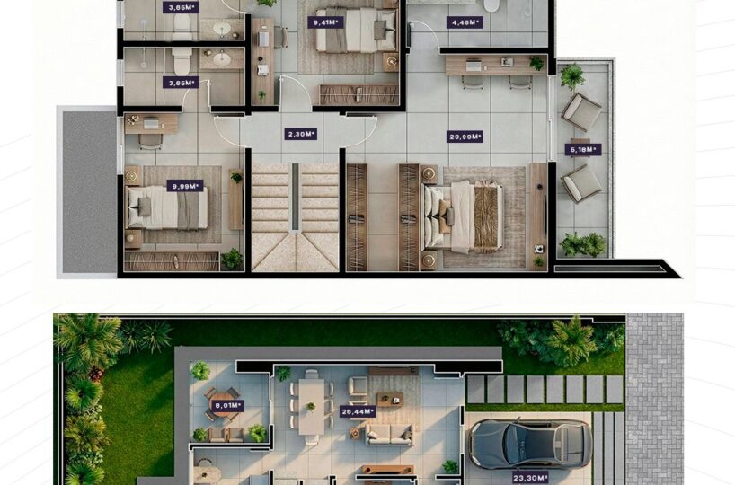 105 casas duplex em condomínio fechado com Lotes a partir de 170 m². Para quem busca o lar seleto definitivo, com segurança de entrega, e localização estratégica de verdade.